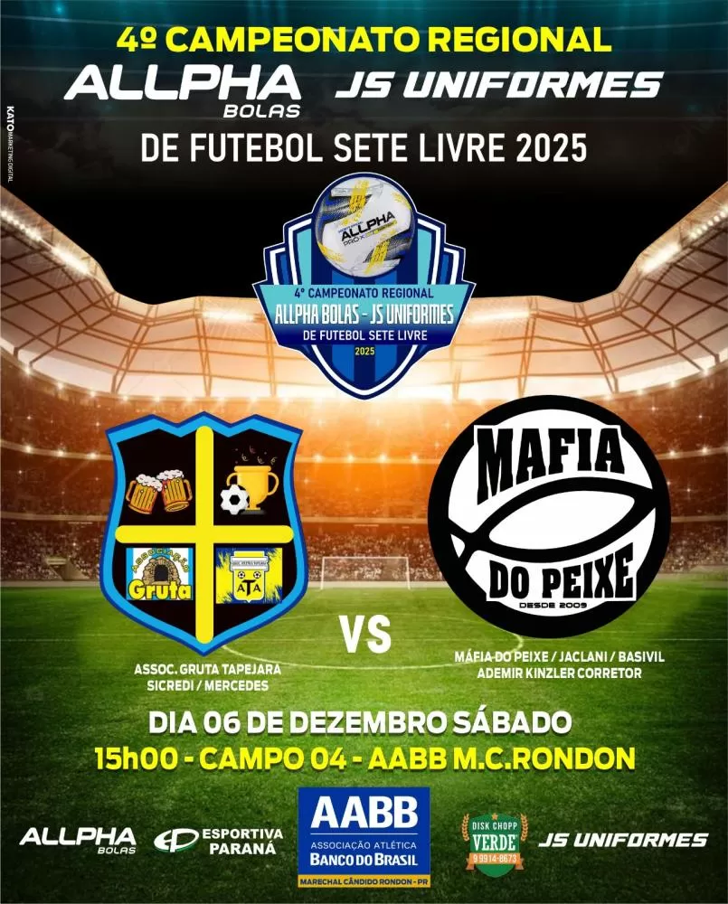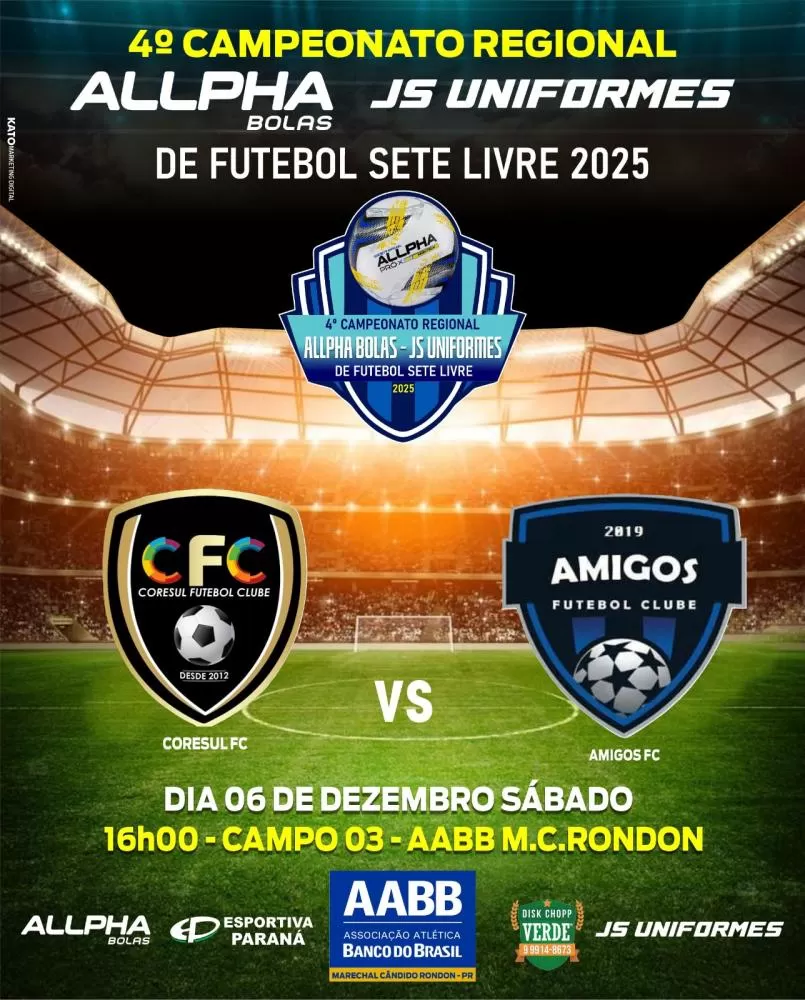 Confira os jogos deste sábado, com inicio às 15 horas nos campos da AABB em Marechal Rondon: