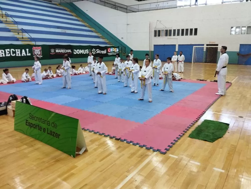 A cerimônia contou com a presença do prefeito Adriano Backes, do secretário de Esportes, Claudinei Mainardes, e do mestre Eduardo Dalberto, responsável pela aplicação dos exames. Pais e responsáveis também prestigiaram o momento, acompanhando os atletas das arquibancadas e celebrando mais essa conquista.