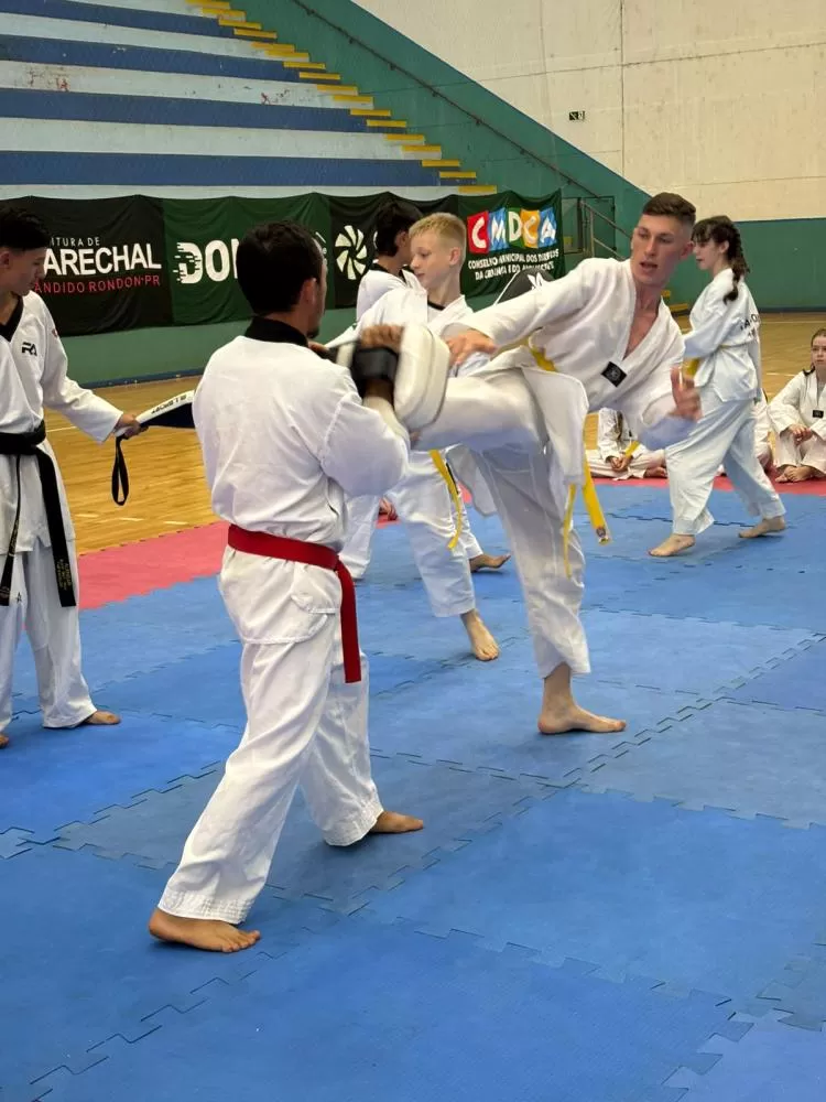 A Associação Cultural Desportiva Rondonense (ACDR) realizou no último sábado (06), no Ginásio Ney Braga, o exame de troca de faixa de atletas de Taekwondo. Ao todo, 74 praticantes participaram da avaliação e foram aprovados, demonstrando evolução técnica e comprometimento com a modalidade.