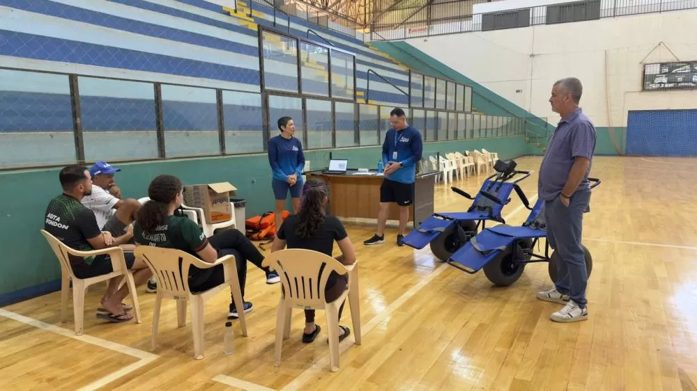 A capacitação teve como foco a correta utilização das cadeiras de rodas anfíbias recentemente incorporadas ao equipamento da secretaria.