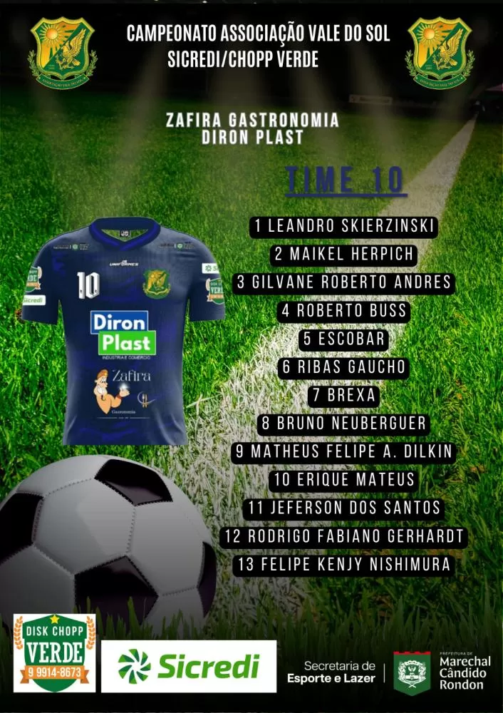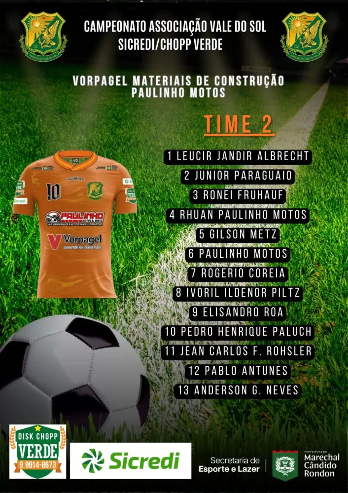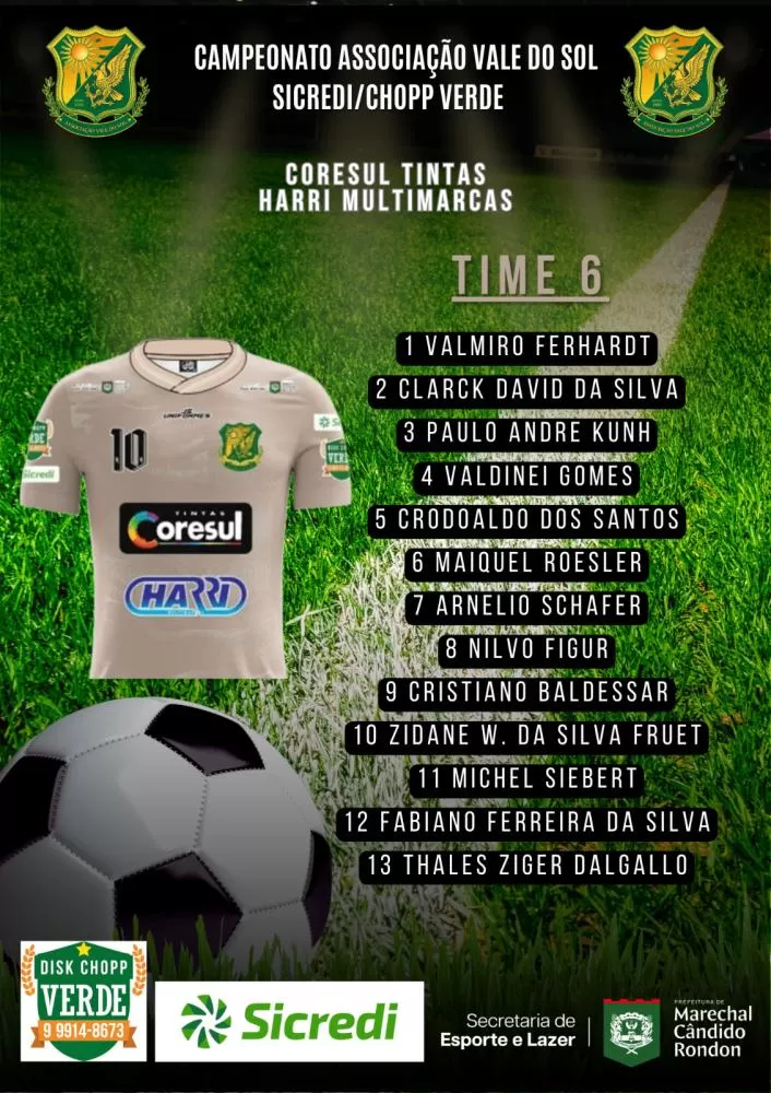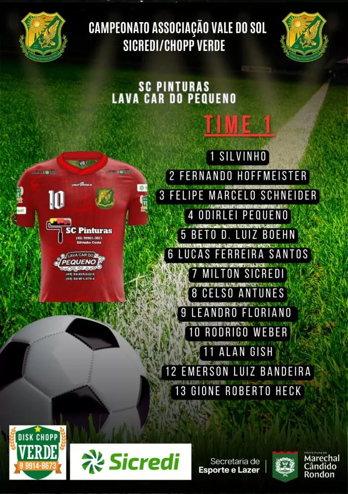 O sistema de escolha dos jogadores das equipes que irão participar do Campeonato Vale do Sol/Sicredi/Choop Do Verde é todo feito através do sorteio do inscritos até na data limite colocada pelo organização do certame. Neste ano, mais uma vez teremos 10 equipes na disputa e assim ficou a formação de cada time: