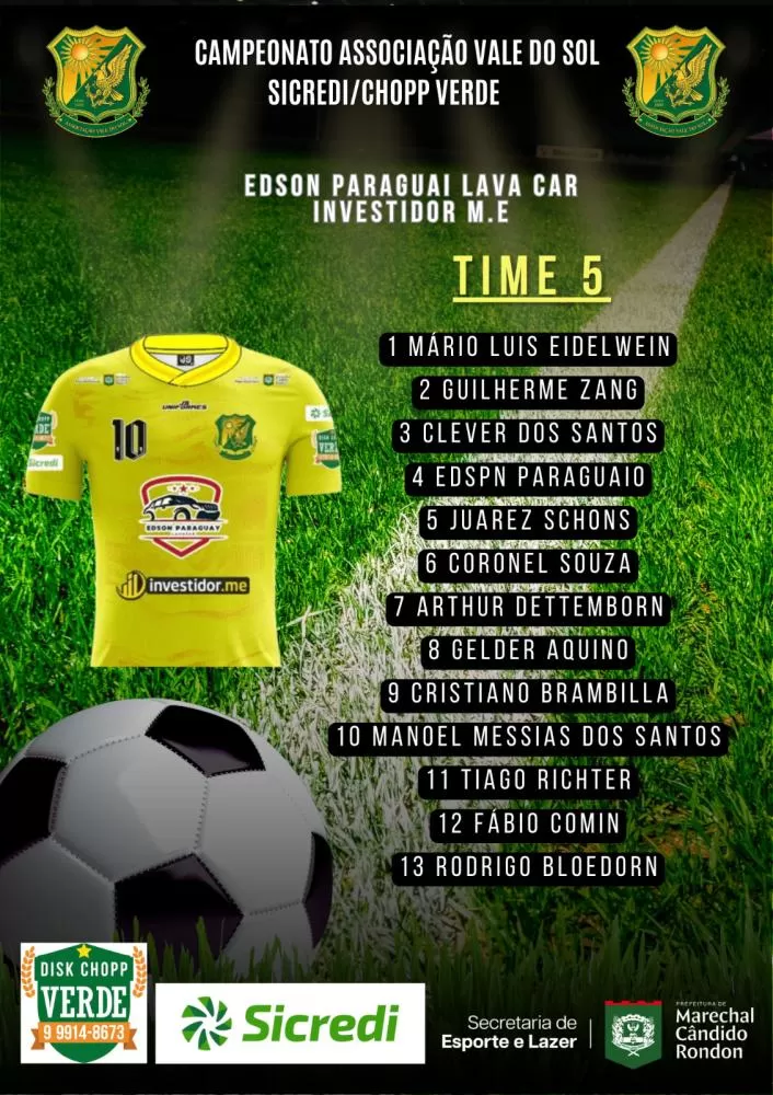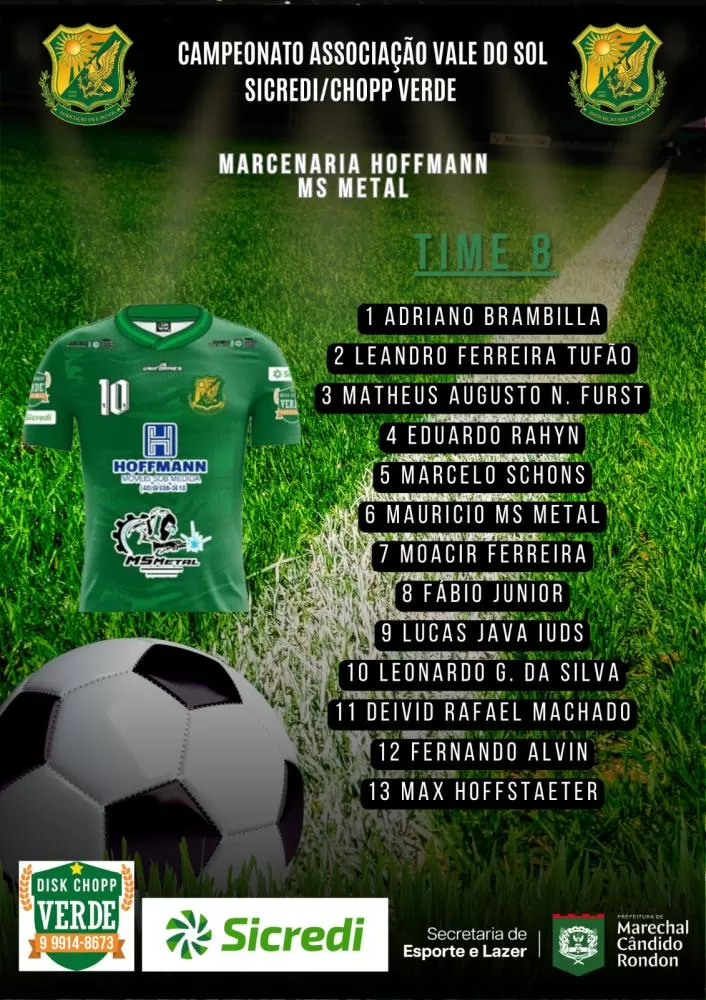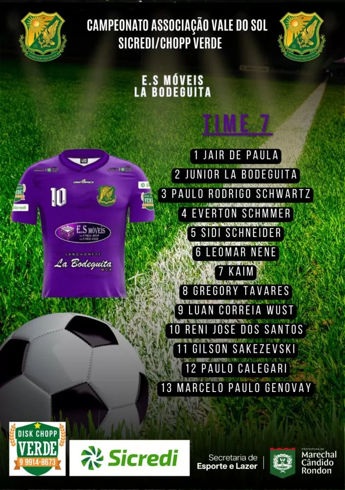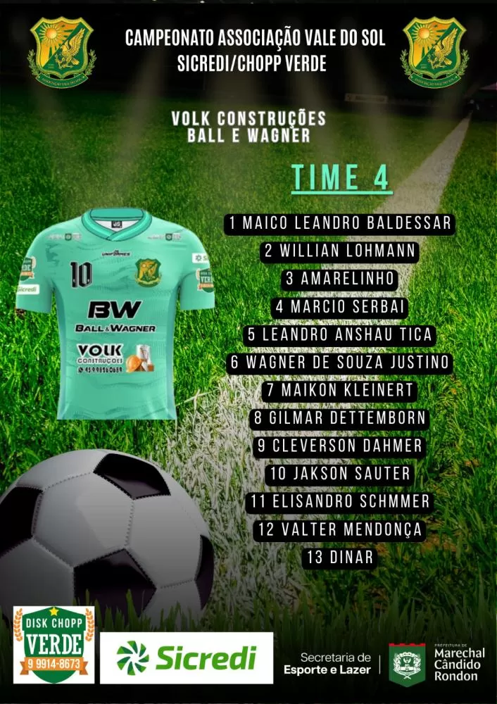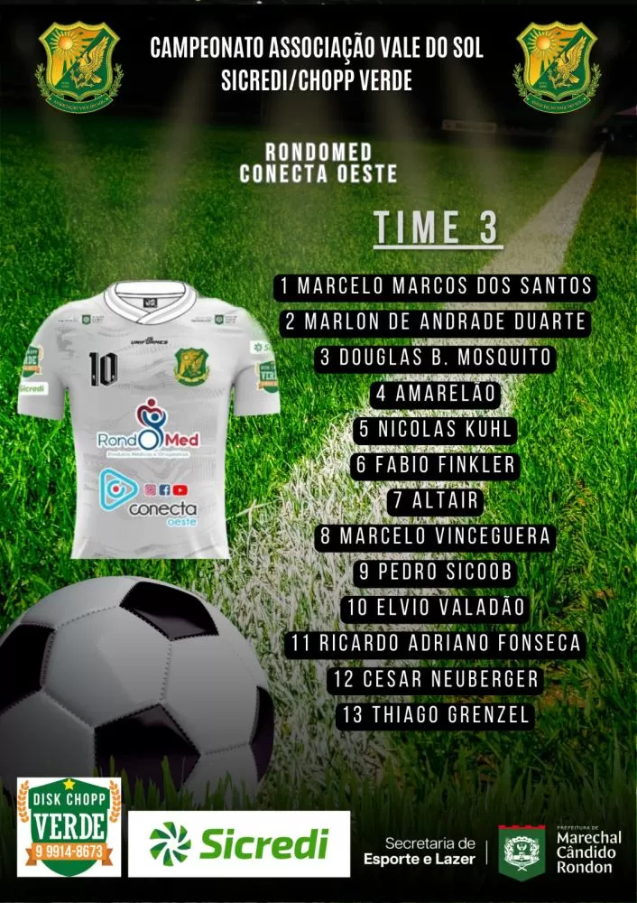 O sistema de escolha dos jogadores das equipes que irão participar do Campeonato Vale do Sol/Sicredi/Choop Do Verde é todo feito através do sorteio do inscritos até na data limite colocada pelo organização do certame. Neste ano, mais uma vez teremos 10 equipes na disputa e assim ficou a formação de cada time:
