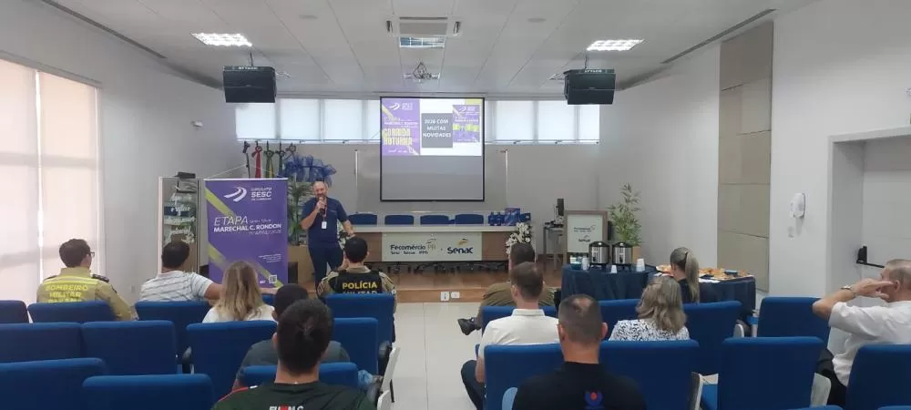 O Sistema Fecomércio Sesc Senac PR promoveu reunião de alinhamento para a organização da etapa 2026 do Circuito Sesc de Corridas – Etapa Marechal Cândido Rondon, que acontecerá no dia 11 de abril de 2026. O encontro foi realizado no auditório do Senac e reuniu representantes de diversas instituições parceiras e forças de segurança do município.