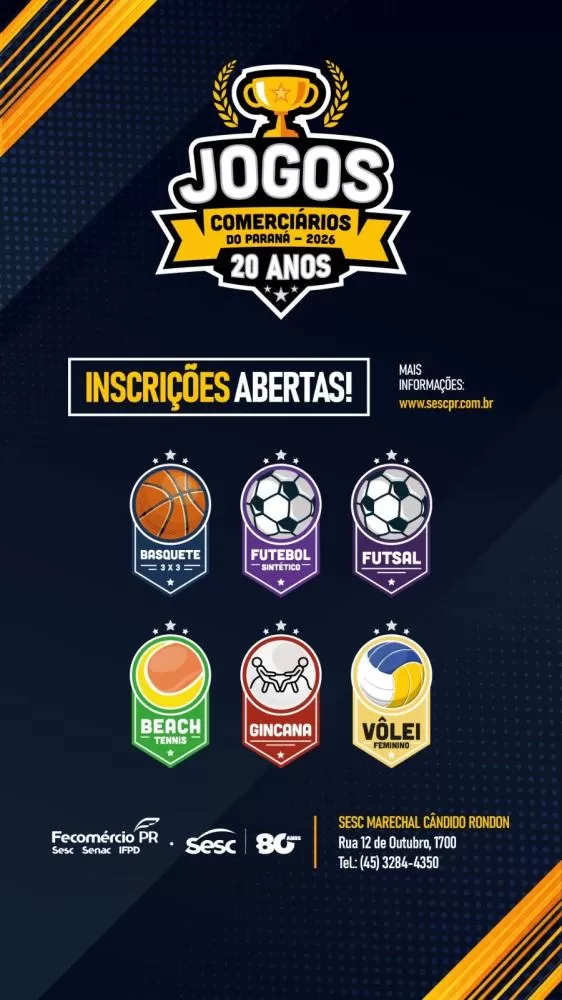 Estão abertas as inscrições para os ? Jogos Comerciários do Paraná 2026!